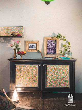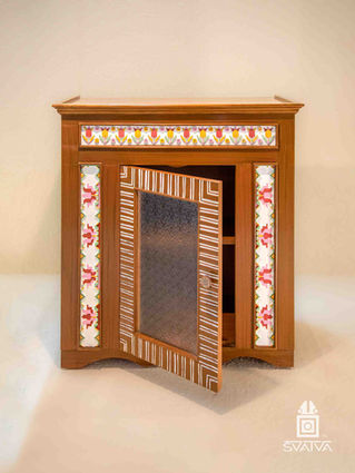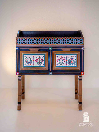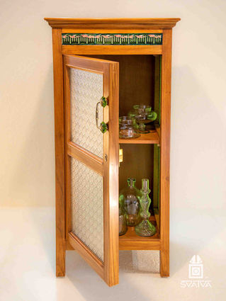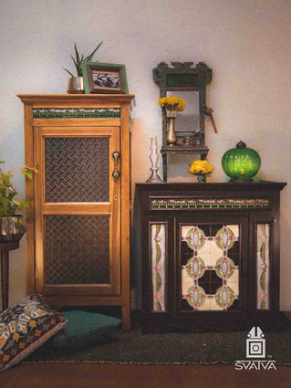 Inspired by the 'Majjus/Majju' - traditional storage cabinets found in rural western India, particularly Gujarat and Rajasthan, our ‘Patola Collection’ cabinets are a celebration of expert craftsmanship and artistic sense. These traditional cabinets are adorned with mirrors and carvings and were used to store valuables, often featuring hidden storage compartments with clever manual mechanisms. At Svatva, we've revived these marvellous furniture pieces by infusing them with unique designs that showcase Patola motifs and mirrors.
