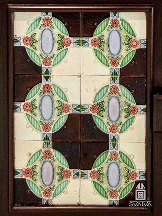 Experience the beauty of our Vintage Tile Cabinet, showcasing handpicked antique ceramic tiles. Its compact design is versatile, making it an impeccable fit for any room in your home, be it the living room or the dining area of your entryway. Its timeless design brings a sense of nostalgia and adds a warm, old-world charm to your interiors.