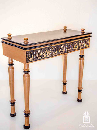 The ‘Ratan Bhāt’ Console exudes timeless elegance with its intricately carved ‘Ratan’ (jewel) Patola motif and solid wood tabletop. Its gorgeous handcrafted details and simple design make it the perfect addition to any entryway, effortlessly complementing table accents, candle stands, plants, or art frames.