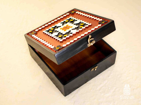 Our trinket boxes are the perfect solution for storing a variety of items, including knickknacks, jewelry, watches, silverware, stationary, and as gifts for special occasions. Featuring a beautifully carved Patola motif on the top, these boxes add an elegant touch to any table or surface it is kept on.